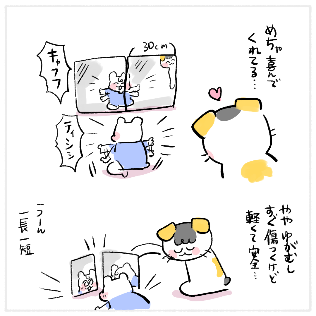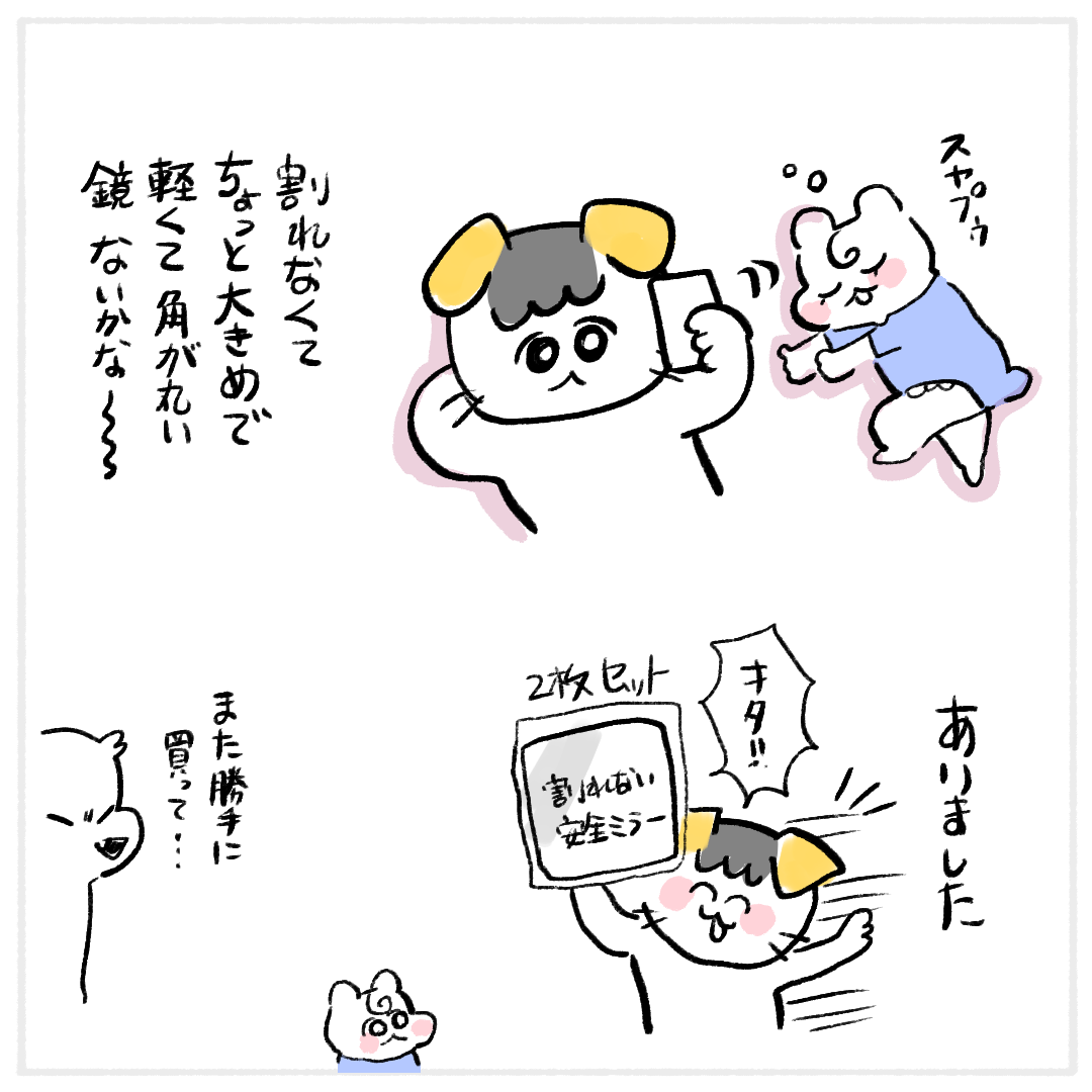 赤ちゃん用に鏡を買いました 2023/07/15 12:54 ええ感じの鏡を買いました😙でも軽くて安全だからたゆむんですよね🤔壁に貼っちゃえば問題ないのかもしれないけどちょっと立てかけてるだけだとなーんか歪んでます😌分厚めの下敷きっぽい質感です₍ᵔ· ̫·ᵔ₎コイチェンは喜んでいるのでまあいいか…😌 これ⬇️ 「日常」カテゴリの最新記事 タグ :#鏡#育児漫画#生後11ヶ月#コイチャン < 前の記事次の記事 > コメント コメントフォーム 名前 コメント 記事の評価 リセット リセット 顔 星 情報を記憶 コメントを投稿する