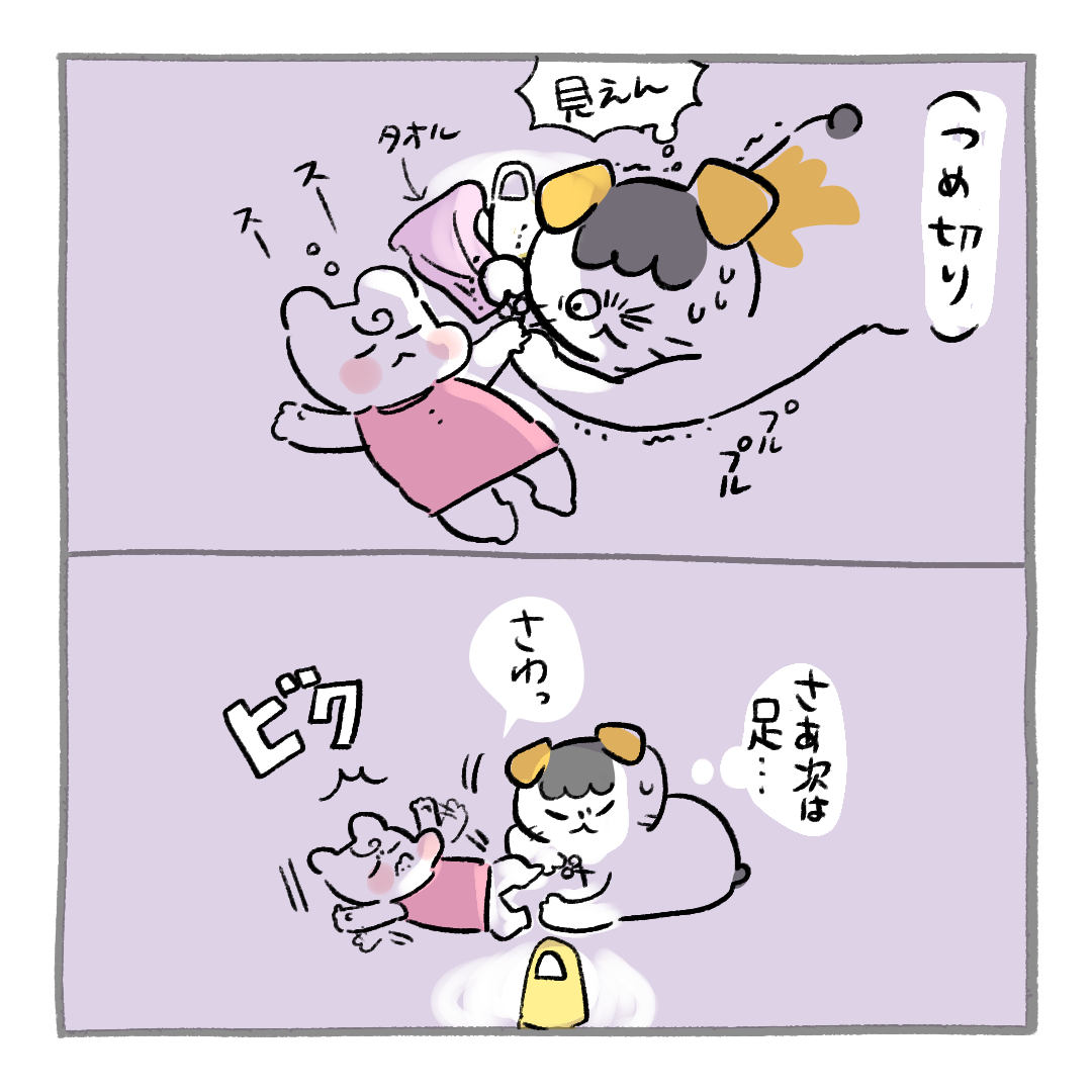 爪切り難しいし 目も霞むし👵 2023/11/13 11:30 足が敏感みたいで足の爪をスムーズに切れません😭爪が伸びるとつねくられた時と蹴られた時に負傷するので(親が)こまめに切っています…😌ワキとか乳とかの柔らかい皮膚を爪でつねくられるの本当勘弁して欲しい🥺あるあるらしいですね😭 痛みが我慢できなくなってきたら切り時😂 「日常」カテゴリの最新記事 タグ :#爪切り#育児漫画#1歳#コイチャン < 前の記事次の記事 > コメント コメントフォーム 名前 コメント 記事の評価 リセット リセット 顔 星 情報を記憶 コメントを投稿する