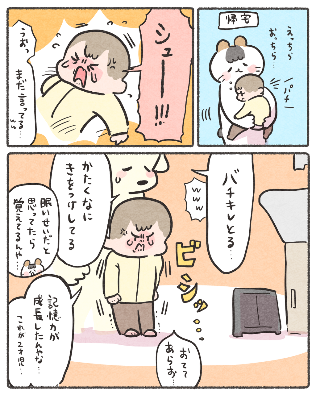 どうしても今滑りたかった念が残っていたらしい 2025/01/16 10:00 珍しくバチキレていた日コイチャンはどちらかと言うと聞き分けのいい子で泣き叫んで嫌がることは少ない方…だと個人的には思っています(世間の子供をあまり知らない) 「日常」カテゴリの最新記事 タグ :#コイチャン#育児漫画#2歳#イヤイヤ期 < 前の記事次の記事 > コメント コメントフォーム 名前 コメント 記事の評価 リセット リセット 顔 星 情報を記憶 コメントを投稿する