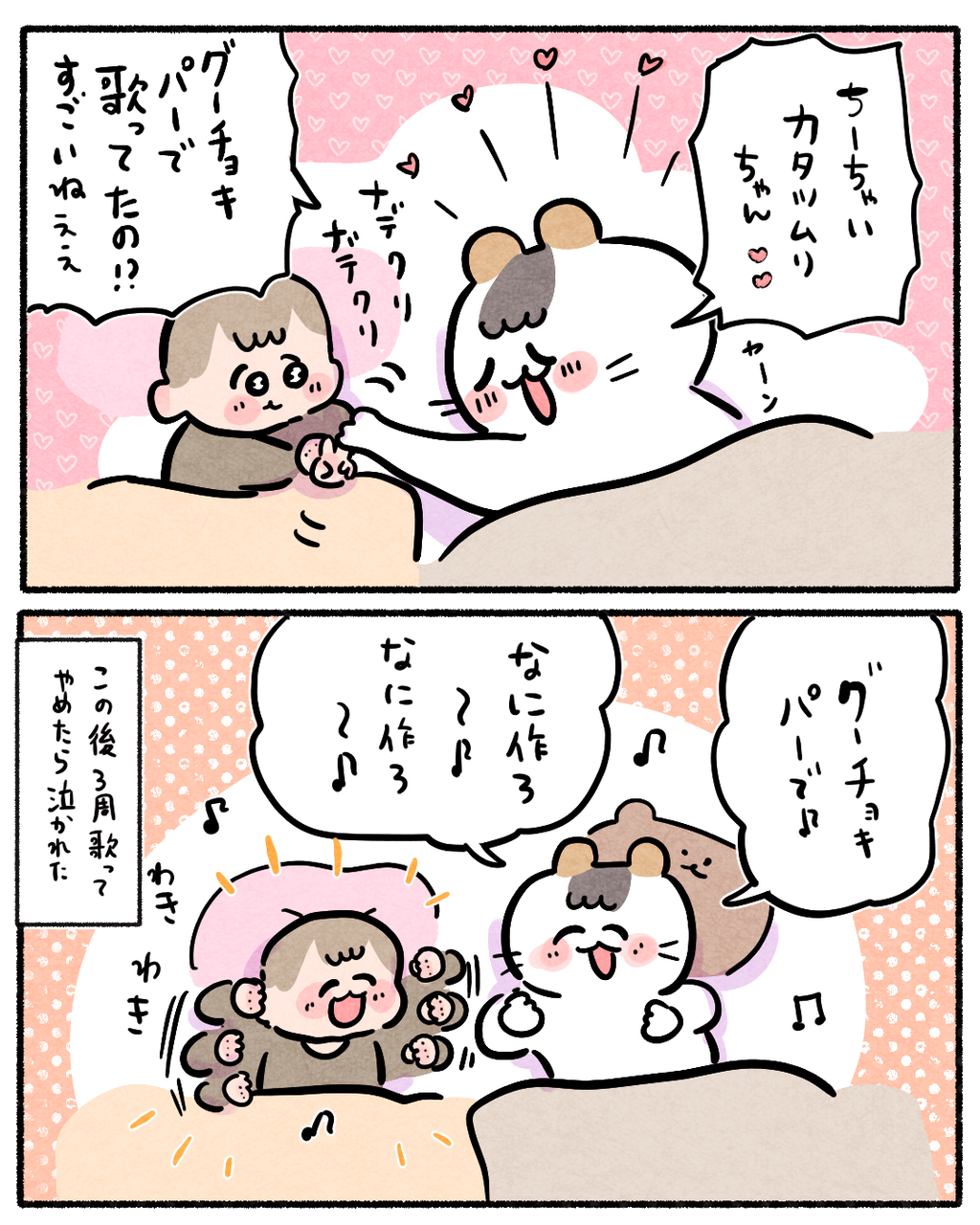 謎歌からのカタツムリ 2025/01/25 10:00 いっぱい歌うようになってきました!!すごい…2歳児…歌が歌えるなんて…🥹 「日常」カテゴリの最新記事 タグ :#コイチャン#育児漫画#2歳 < 前の記事次の記事 > コメント コメントフォーム 名前 コメント 記事の評価 リセット リセット 顔 星 情報を記憶 コメントを投稿する