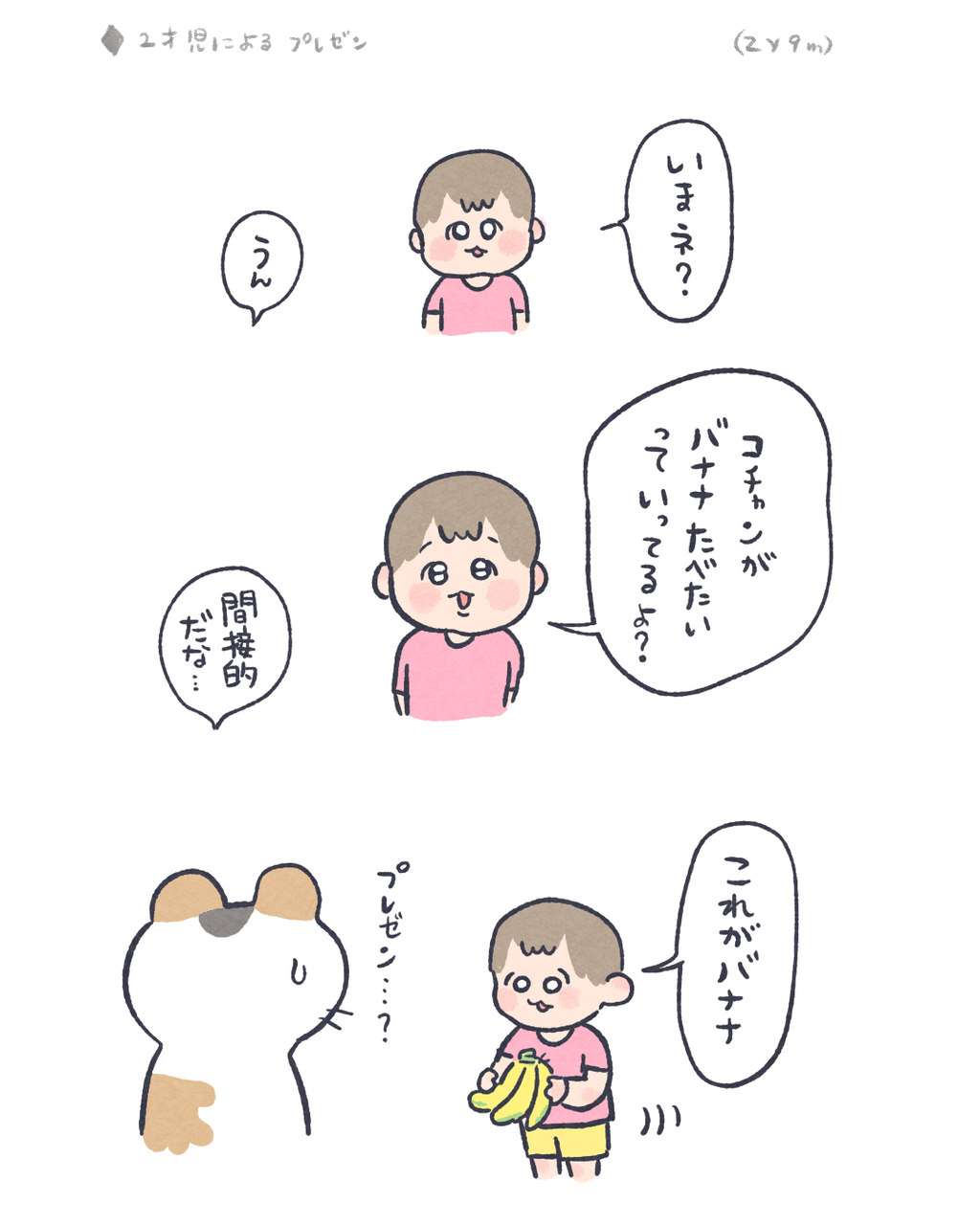 間接的なバナナの要求のしかた 2025/07/20 08:00 「日常」カテゴリの最新記事 タグ :#コイチャン#育児漫画#2歳#バナナ < 前の記事次の記事 > コメント コメントフォーム 名前 コメント 記事の評価 リセット リセット 顔 星 情報を記憶 コメントを投稿する