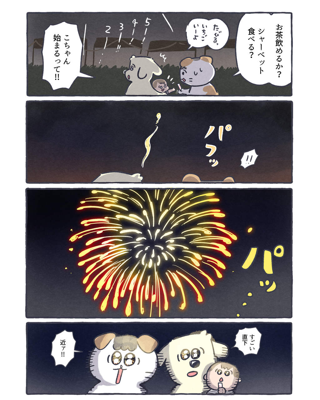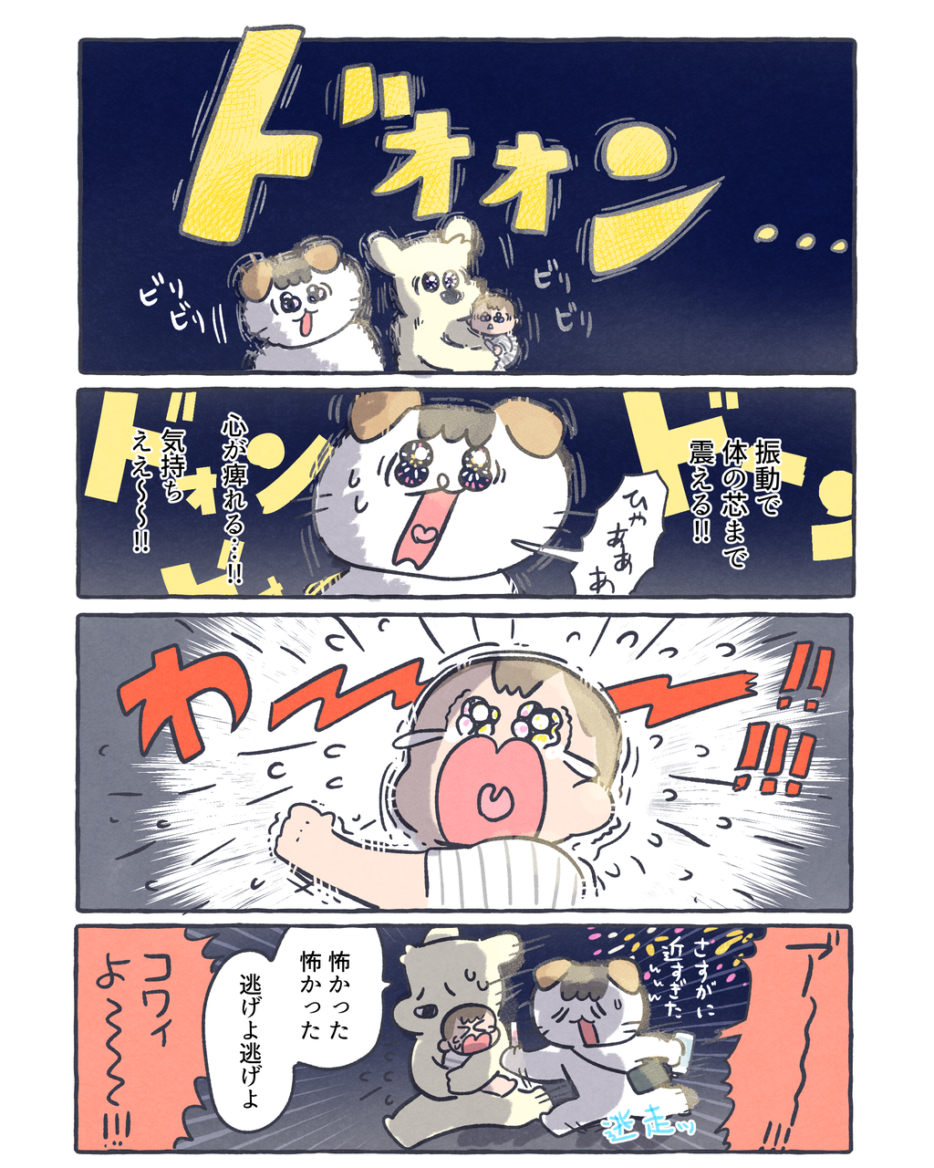 誕生日の夜 花火を見に行ったら(前編) 2025/08/09 08:00 誕生日に花火なんて素敵😌 ちょこっと続くんじゃ 「イベント」カテゴリの最新記事 タグ :#花火#誕生日#コイチャン#育児漫画#3歳 < 前の記事次の記事 > コメント コメント一覧 (2) 1. AK 2025/08/11 00:13 絵が綺麗です〜✨ 子どものびっくりして泣いてるところって可哀想だけどなんか可愛いと思っちゃいます 0 ハズレ(マヨ) がしました 2. ハズレ 2025/08/11 11:19 >>1AKさん ありがとうございます…☺️やった〜!! そうなんですよね〜😂可哀想可愛い… 逃げ帰る際も周りから微笑ましい目線を向けられていました☺️ 0 ハズレ(マヨ) がしました コメントフォーム 名前 コメント 記事の評価 リセット リセット 顔 星 情報を記憶 コメントを投稿する
