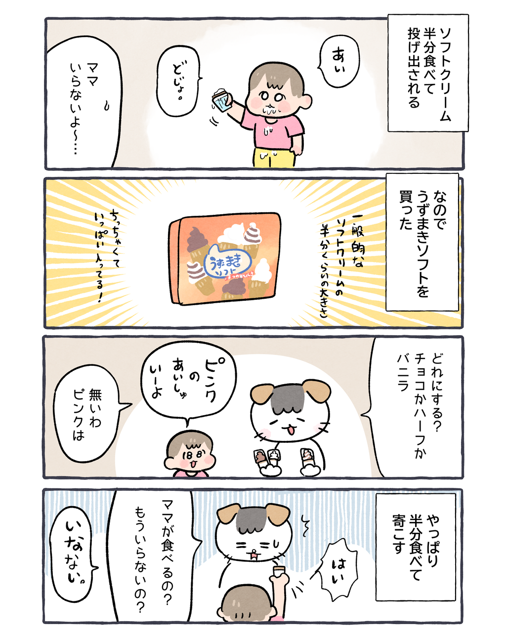 ソフトクリームでケンカする 2025/08/13 08:00 しばらくまだ2歳の話が続きます😌ソフトクリームはカップ派です…モナカが嫌いで…🥺クレミアなら最高なんですけど🥺 「日常」カテゴリの最新記事 タグ :#コイチャン#育児漫画#2歳 < 前の記事次の記事 > コメント コメントフォーム 名前 コメント 記事の評価 リセット リセット 顔 星 情報を記憶 コメントを投稿する