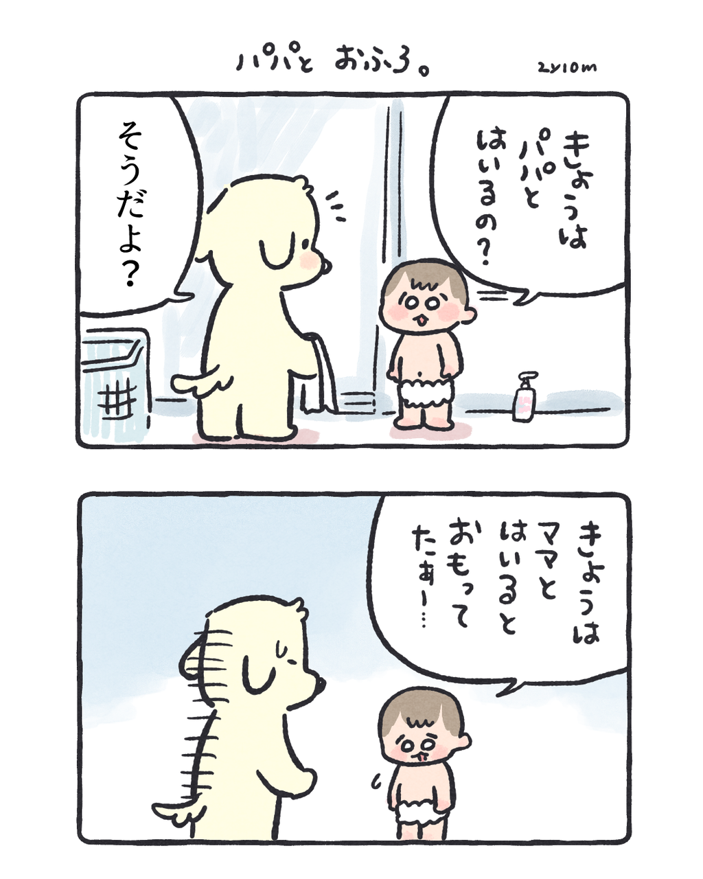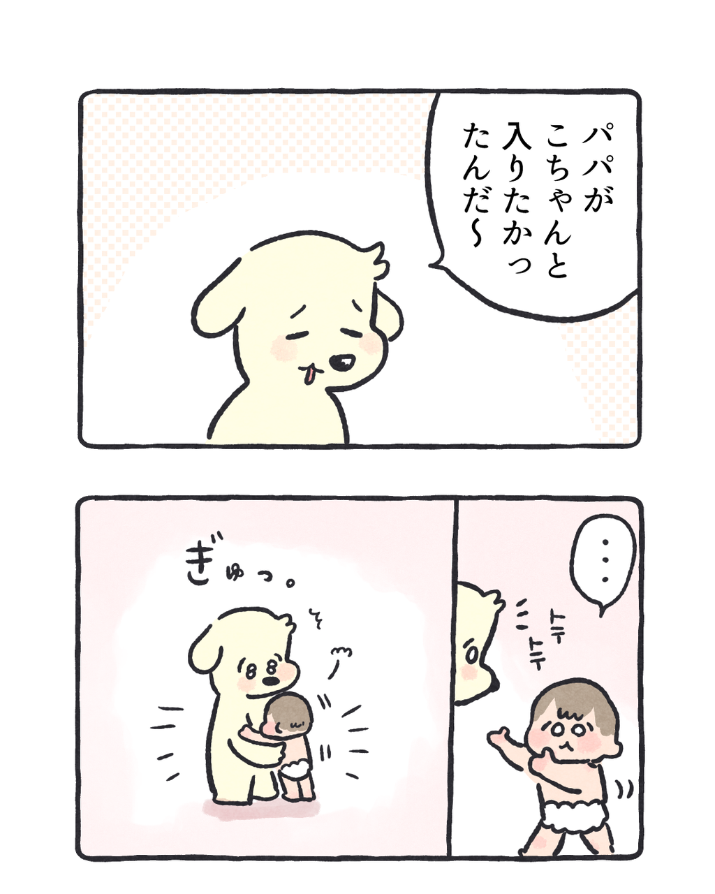 パパとお風呂に入る時の地味な一言 2025/08/29 08:00 愛。ひとコマをでっかく、余白を増やしました🤔どうでしょうか…ブログでは外側の余白は切った方がいいかな…最近読んだ余白を大きくとった2コマ漫画が非常に読みやすくすごく可愛かったので真似しています|ω・) 「コイチャン」カテゴリの最新記事 タグ :#コイチャン#育児漫画#2歳 < 前の記事次の記事 > コメント コメント一覧 (4) 1. ゆきの 2025/08/29 15:47 こちゃんのちっこさが際立ってるし、読みやすいです!おむつかわいい。。 0 ハズレ(マヨ) がしました 3. ハズレ 2025/08/30 11:19 >>1 ゆきのさん いつもありがとうございます…☺️ 良かった☺️☺️ 0 ハズレ(マヨ) がしました 2. ぴよ 2025/08/29 22:36 読みやすいです(^ν^) でも前のも読みやすかったですよ! こちゃん意志はっきりしてきてて素敵 0 ハズレ(マヨ) がしました 4. ハズレ 2025/08/30 11:21 >>2 ぴよさん 前のも読みやすかったですか…!🤔 長そうなエピソードは普通のコマ割りで描こうかしら… ありがとうございます🙏❣️ 0 ハズレ(マヨ) がしました コメントフォーム 名前 コメント 記事の評価 リセット リセット 顔 星 情報を記憶 コメントを投稿する
