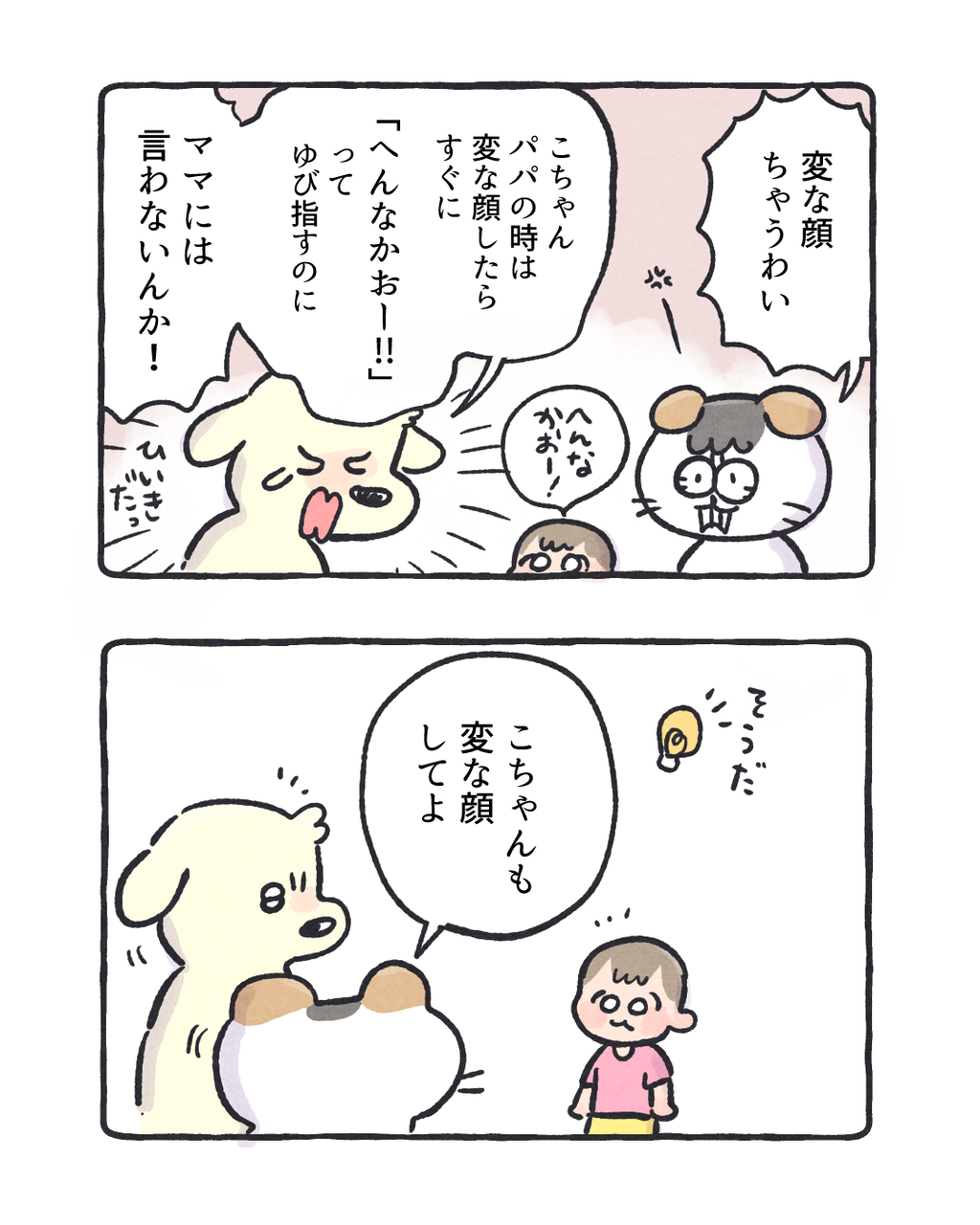 2歳のへんがお 2025/09/09 08:00 変な顔をやってと言われてできるの凄いし変な顔を👅だと思ってる幼子も可愛い 「日常」カテゴリの最新記事 タグ :#コイチャン#育児漫画#2歳#変顔#旦那 < 前の記事次の記事 > コメント コメントフォーム 名前 コメント 記事の評価 リセット リセット 顔 星 情報を記憶 コメントを投稿する