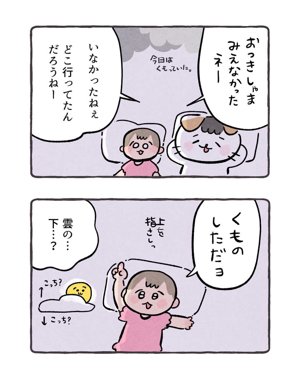 2歳児による月が見えない時の月の挙動についての考察 2025/10/15 08:00 「コイチャン」カテゴリの最新記事 タグ :#コイチャン#育児漫画#2歳#月 < 前の記事次の記事 > コメント コメントフォーム 名前 コメント 記事の評価 リセット リセット 顔 星 情報を記憶 コメントを投稿する