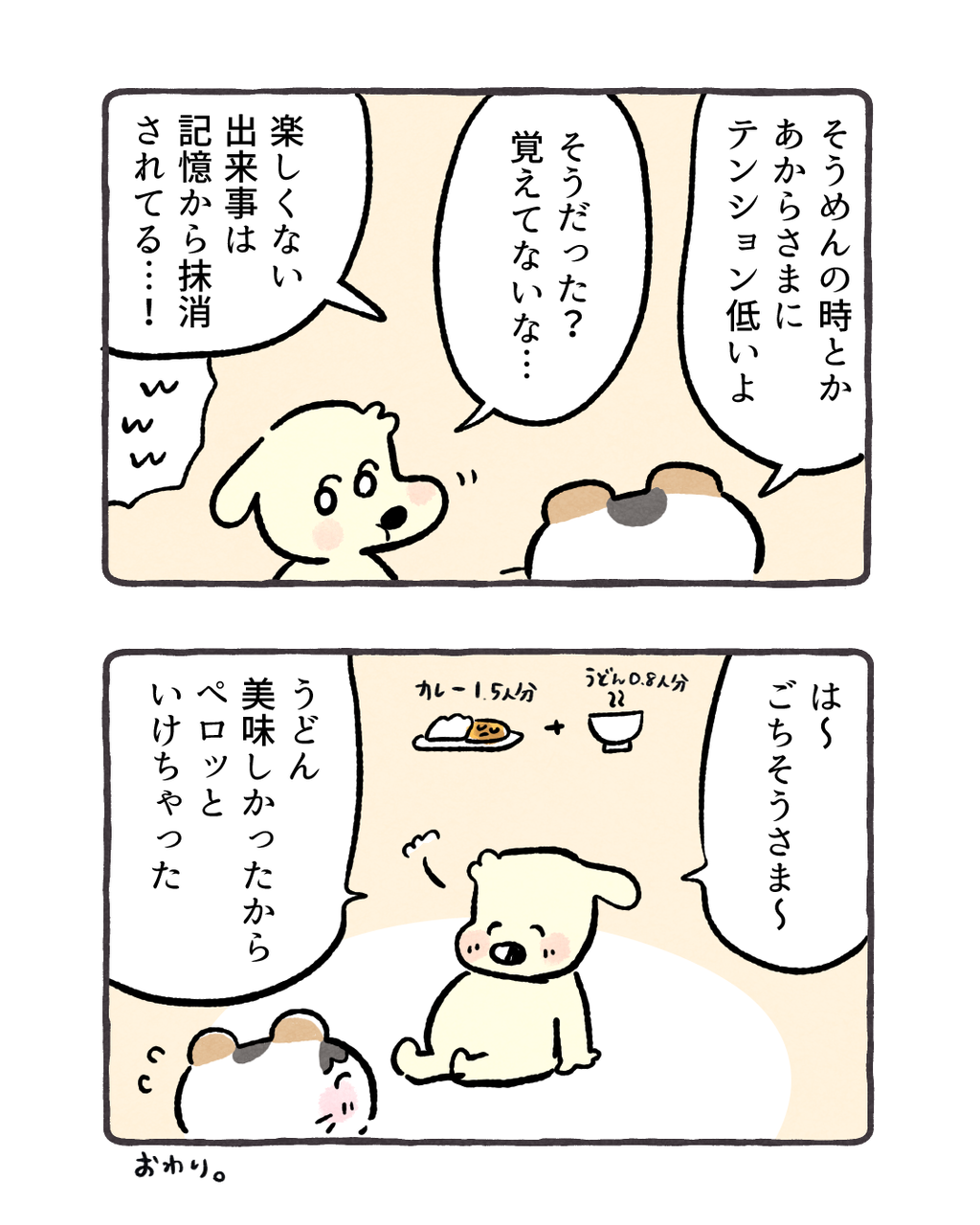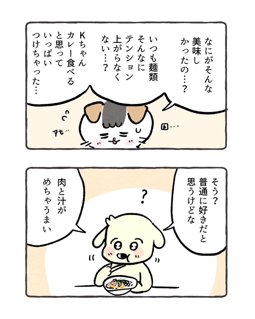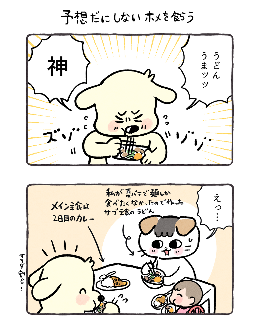 どうしてもカレー食べたくなかった結果 2025/10/18 08:00 2日目のカレーはちょっと苦手です…😌🍛暑くて麺しか食べたくなかった日に自分用に作ったうどんが思いのほか好評でちょっと嬉しかった話でした😌 「Kちゃん」カテゴリの最新記事 タグ :#旦那#うどん#カレー < 前の記事次の記事 > コメント コメント一覧 (2) 1. ななし 2025/10/18 20:20 うどん、確かにうまそー!😋 ちなみに「いっぱいつけちゃった」って方言なのかな?「いっぱい作っちゃった」って意味?? 0 ハズレ(マヨ) がしました 2. ハズレ 2025/10/18 21:46 >>1 ななしさん 沢山よそってしまった…って意味です! 方言なのかしら!?🥺やん… 0 ハズレ(マヨ) がしました コメントフォーム 名前 コメント 記事の評価 リセット リセット 顔 星 情報を記憶 コメントを投稿する
