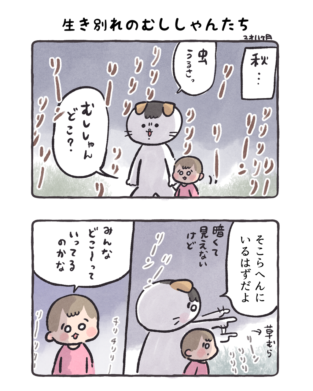 生き別れの虫しゃん 2025/10/30 08:00 もう最近はすっかり虫も鳴かなくなりましたね…どこに行ったんだ…冬眠…?死…?😧 「日常」カテゴリの最新記事 タグ :#コイチャン#育児漫画#2歳 < 前の記事次の記事 > コメント コメントフォーム 名前 コメント 記事の評価 リセット リセット 顔 星 情報を記憶 コメントを投稿する