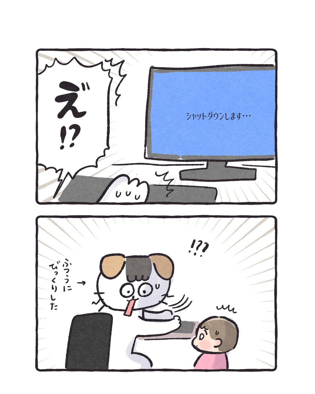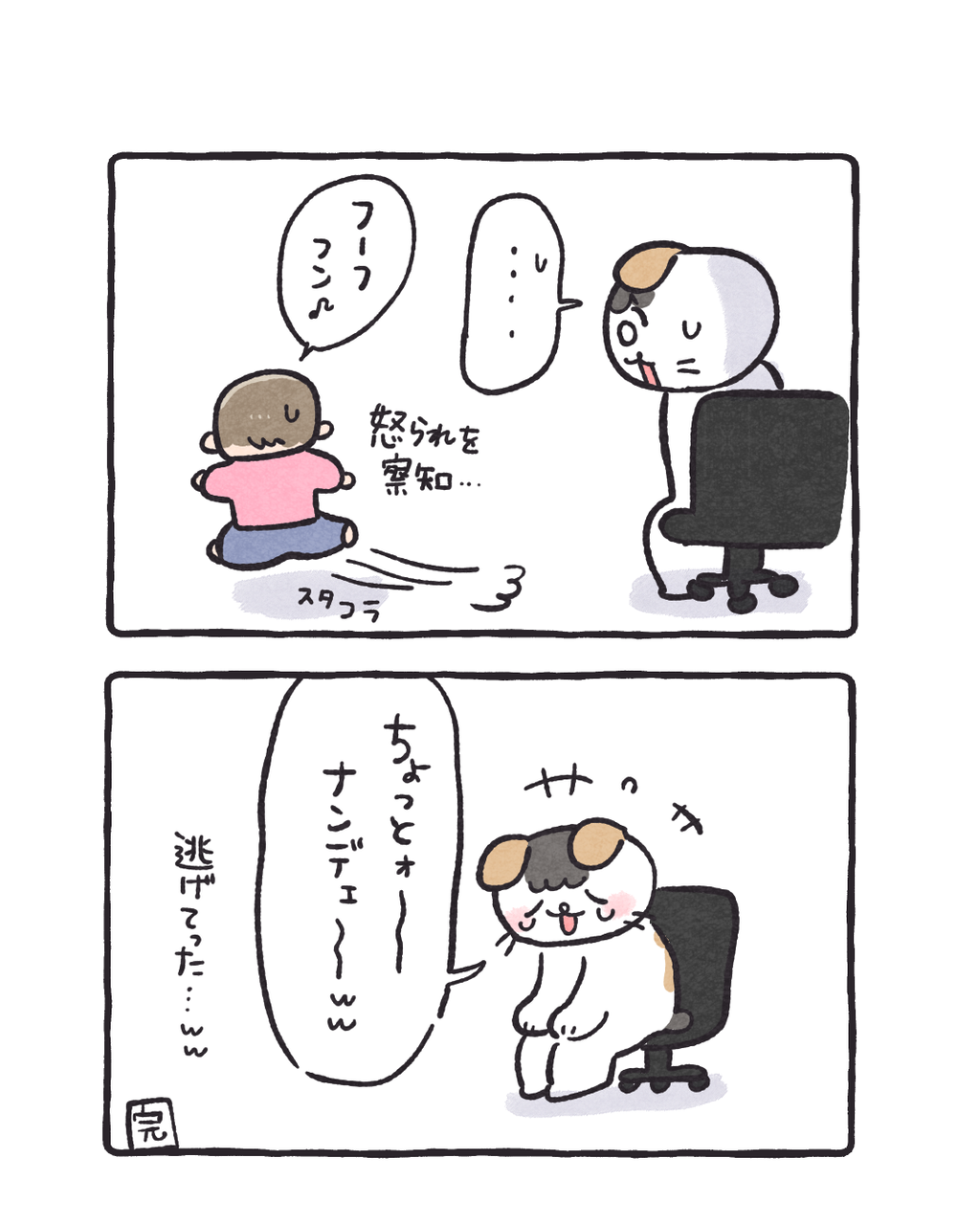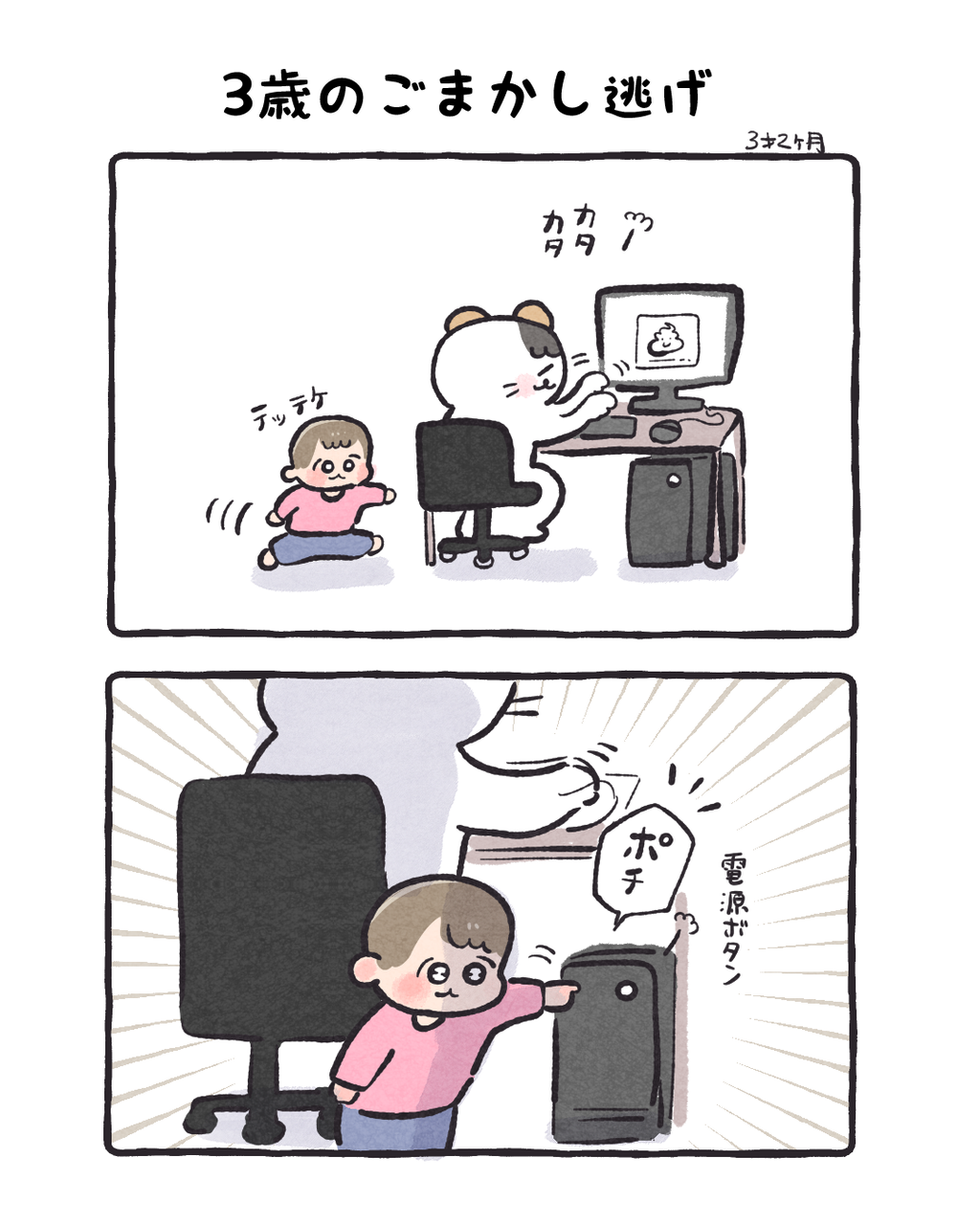 3歳の逃げ方がおもしろい 2026/02/13 08:00 なんかやっちゃったらしいことは分かったようで鼻歌を歌って去っていきました(ここのボタン押しちゃダメよ とだけは言っていました)(全然イタズラしないので油断してました) 「コイチャン」カテゴリの最新記事 タグ :#コイチャン#育児漫画#3歳 < 前の記事次の記事 > コメント コメントフォーム 名前 コメント 記事の評価 リセット リセット 顔 星 情報を記憶 コメントを投稿する