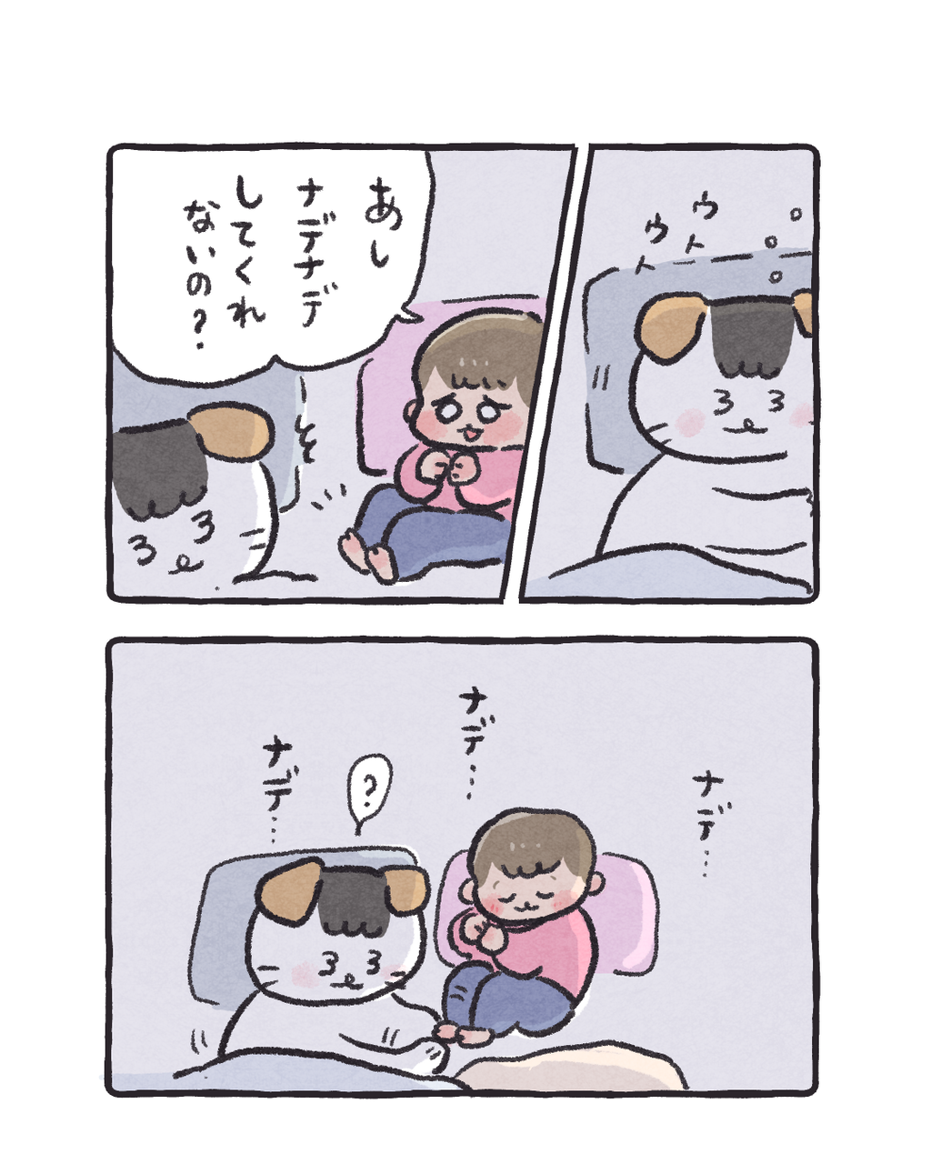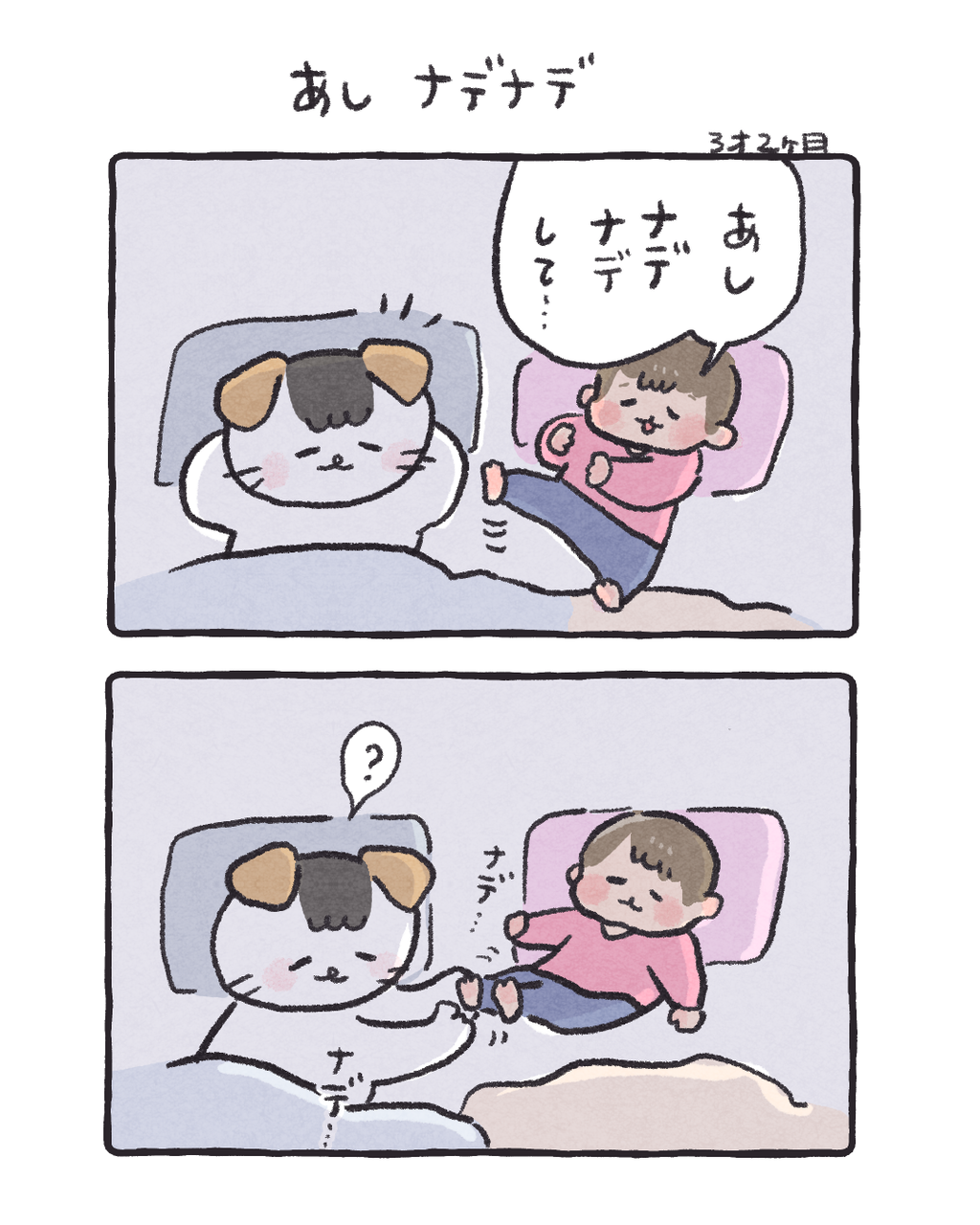 あしナデナデすると寝やすい? 2026/02/16 08:00 足をあっためると眠りやすくなるらしいですね😌そういうこと…? 「コイチャン」カテゴリの最新記事 タグ :#コイチャン#育児漫画#3歳#寝かしつけ < 前の記事次の記事 > コメント コメント一覧 (2) 1. マッキ 2026/02/18 14:01 母が保育士なんですが、『よく歩く・動く子は足を軽くマッサージするように揉んだり撫でてあげるとよく寝ることが多いよ〜』と言ってました!子どもも足が疲れてるんですかね……? 0 ハズレ(マヨ) がしました 2. ハズレ 2026/02/18 18:08 >>1 マッキさん 可愛い〜☺️なんでだろ…💕 うちの子は全然運動しない静かな人なんですが ツボかなにかがあるのかしら…🤔 0 ハズレ(マヨ) がしました コメントフォーム 名前 コメント 記事の評価 リセット リセット 顔 星 情報を記憶 コメントを投稿する