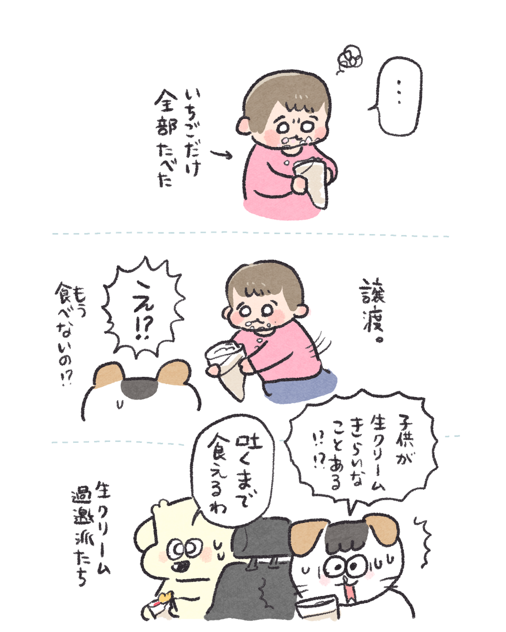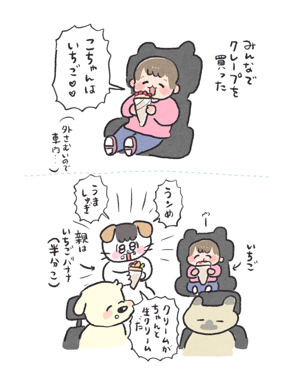 クレープの生クリームを残すなんて 2026/02/24 08:00 どうして!!コイチャンは生クリームはそんなに食べませんがカスタードクリームは大好きです😌私はカスタード苦手の生クリーム狂なので不思議です🥹先日は父も母も得意でない切り干し大根の煮物をパクパク食べていました。我々両親とも食の好みが狭いので好きでも食卓に出てこない料理がいっぱいあるかもしれない…🥺どうしたもんか…😶🌫️ 「日常」カテゴリの最新記事 タグ :#コイチャン#育児漫画#3歳 < 前の記事次の記事 > コメント コメントフォーム 名前 コメント 記事の評価 リセット リセット 顔 星 情報を記憶 コメントを投稿する