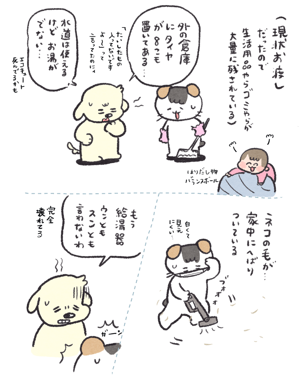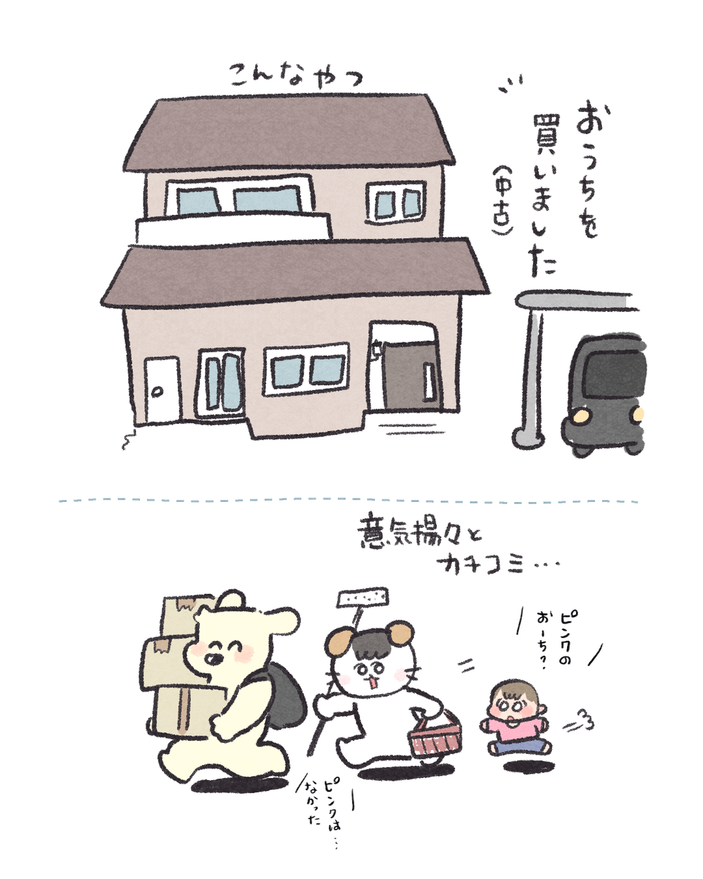新居を一括で購入しました 2026/02/25 08:00 本日はリアルタイム日記なのでいつもの絵日記とちょっとズレがあります🙏新居楽しいです🏠給湯器直るまで実家住まいです…😶🌫️ 「買ってよかったもの」カテゴリの最新記事 タグ :#コイチャン#育児漫画#3歳#新居 < 前の記事次の記事 > コメント コメント一覧 (15) 1. おかゆ 2026/02/25 08:03 わー新居👏おめでとうございます👏 早く住みたいですね…🥺 0 ハズレ(マヨ) がしました 3. ハズレ 2026/02/25 20:22 >>1 おかゆさん ありがとうございます🥺 給湯器やさんに連絡したところ2ヶ月かかるとのことで…😇 幼稚園に間に合わないよ〜〜!!😭 0 ハズレ(マヨ) がしました 2. AK 2026/02/25 16:10 サスペンス過ぎます😂 片付け大変そうですが頑張ってくださいー! 身バレ(?)しない程度にまた片付けの記録見たいです!! 0 ハズレ(マヨ) がしました 4. ハズレ 2026/02/25 20:23 >>2 AKさん 面白すぎました😂 片付けで絶対見るのに放置しておける心がよく分かりません… なんの感情も無くなっちゃったのか…?😭 0 ハズレ(マヨ) がしました 5. 名無し 2026/02/25 20:39 お引越しおめでとうございます!!👏 少しでも早く実母さんから離れられることをお祈りしています(;;) ……にしても怨念が凄そうなお家なので1度お祓いをおすすめします(;;)!!! 0 ハズレ(マヨ) がしました 6. ハズレ 2026/02/25 20:44 >>5 名無しさん ありがとうございます😭🙌 助けて〜〜給湯器やさ〜〜ん!!😭 塩まいときます🧟♀️ アジシオしか無いんですけどいけますかね… 0 ハズレ(マヨ) がしました 7. わ 2026/02/25 21:53 お風呂入れないのは致命的すぎます😭😭 はやく楽しい日常が過ごせるようになりますように...! 0 ハズレ(マヨ) がしました 12. ハズレ 2026/02/26 16:43 >>7 わさん ありがとうございます😭電化製品総動員してなんとかならないかしら😂 0 ハズレ(マヨ) がしました 8. 774 2026/02/25 22:49 新居おめでとうございます〜✨ 湯船に水が張れるのであれば、修理までの繋ぎとして電気式のポータブル湯沸かし的なものを使ってみてもいいかもしれません。 「湯沸かし器」「投げ込みヒーター」で検索してみてください。 0 ハズレ(マヨ) がしました 13. ハズレ 2026/02/26 16:45 >>8 774さん ありがとうございます!それ!コメントで教えて頂きました🥹 大金を失ってナーバスな旦那にどうプレゼンしようか…なところです🤔 0 ハズレ(マヨ) がしました 9. ゆきの 2026/02/26 01:28 ちょっwまさかのくくくろぬりいいい笑 そして80往復はむりだ…😭 0 ハズレ(マヨ) がしました 14. ハズレ 2026/02/26 16:50 >>9 ゆきのさん 3時間ケトルに張り付いてるのもキツい…笑😂 なんか方法ありそうなので試行錯誤してみます!🥹 0 ハズレ(マヨ) がしました 10. ハル 2026/02/26 07:24 ひとまず!おめでとうございます! カーポートも着いて素敵なおうち! はやくのんびり過ごせるおうちになるといいですねー 0 ハズレ(マヨ) がしました 15. ハズレ 2026/02/26 16:53 >>10 ハルさん ありがとうございます!!☺️そうなんです…闇は深そうだけど庭は広くて車も屋根のあるところに停めれて 日当たり最強で…スーパーも幼稚園も近くて🥹💕 もうなんぼでも怨念置いてってもらって構わないです…🕺 0 ハズレ(マヨ) がしました 11. ぴよ 2026/02/26 16:30 新居おめでとうございます〜! ちなみにもう検討済みだったら申し訳ないんですが、お近くにシャワー付きなどのジムとかはないですかね… 0 ハズレ(マヨ) がしました コメントフォーム 名前 コメント 記事の評価 リセット リセット 顔 星 情報を記憶 コメントを投稿する